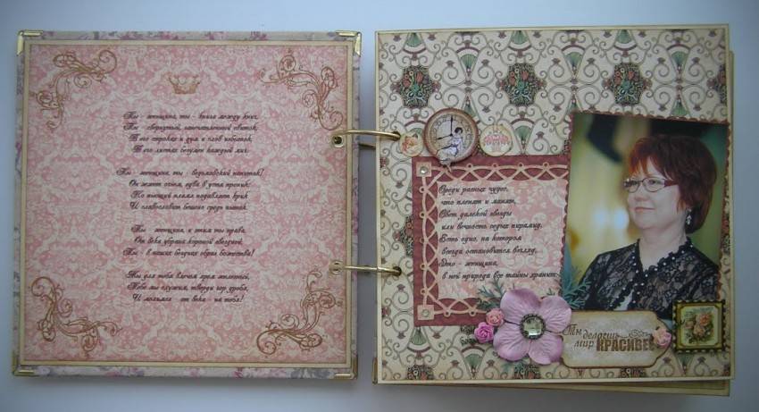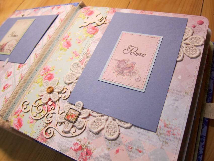 Однако эти альбомы смотрятся очень романтично, трогательно и душевно. Их особенно хочется украшать, добавив аппликации, ленточки, бусинки, кружева. К тому же такой вариант располагает к творческому процессу.