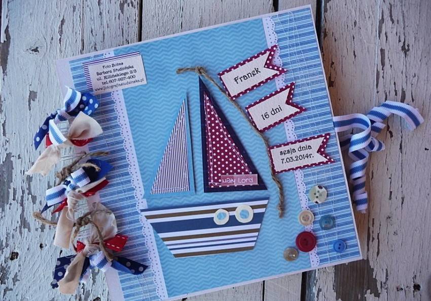 Если свадьба проходила в каком-то особенном формате, то и альбом не должен выбиваться из общего направления. Если это была морская тема, то и в альбоме бедует много голубого, появятся ракушки и полоски.