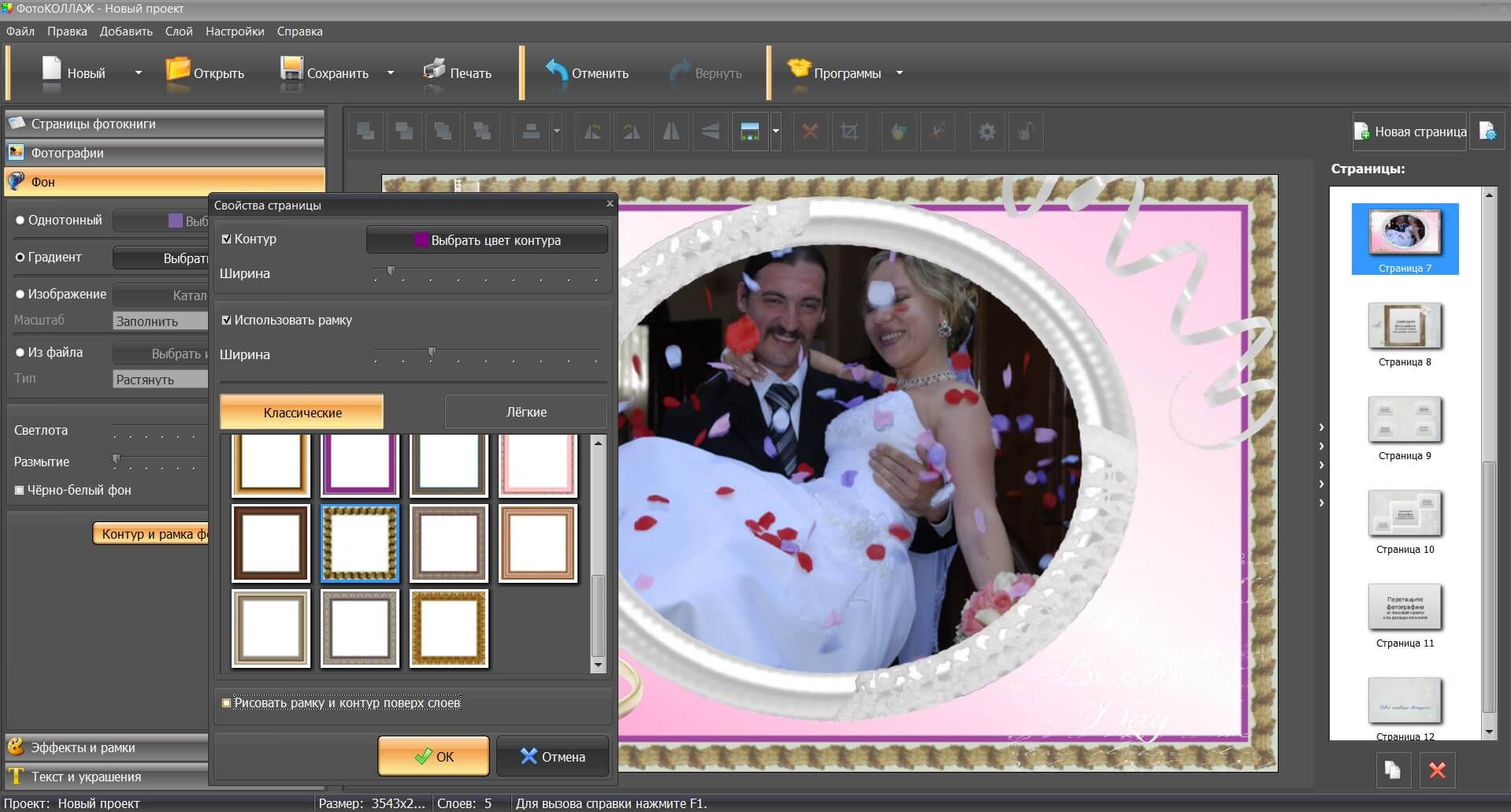 Поможет подчеркнуть теплоту и трепетность чувств молодоженов друг к другу, заострить внимание на эмоциях, а не декорациях. Именно этот стиль реализован в ФотоКОЛЛАЖе. Давайте посмотрим, как выбрать в программе этот шаблон