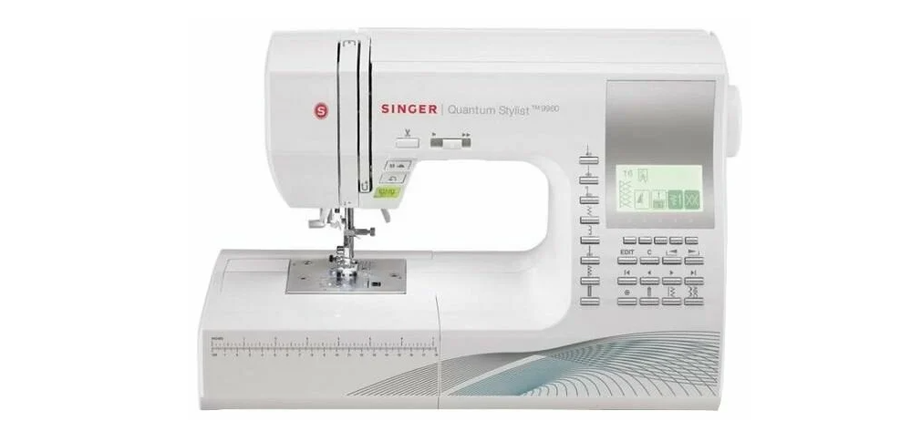 Швейная машина Singer Quantum 9960 – многофункциональный компьютеризированный настольный прибор. Устройство оснащено небольшим дисплеем, горизонтальным челноком и автоматическим нитевдевателем. Предусматривается наличие верхнего транспортера ткани, а также возможность шить двойной иглой. Система оснащена 600 программами и автоматической функцией выполнения петли. С ее помощью вы сможете шить оверлочной, эластичной или потайной строчкой, делая стежки до 4.5-7 мм. Прибор дополнен удобным отсеком для хранения небольших аксессуаров и рукавной платформой, а также небольшим столом для расширения рабочего пространства.