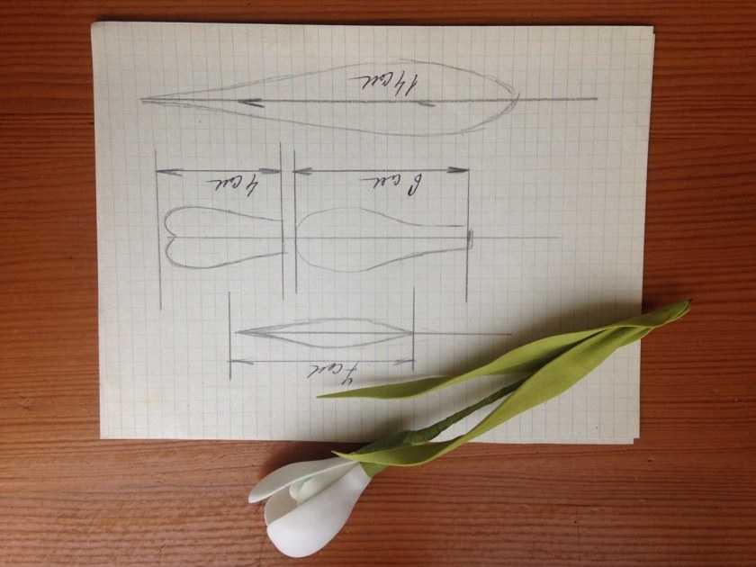 Далее будут волнистые изгибы для придания реалистичности, приклеивание остальных частичек. Нарисуйте три продолговатых листочка на лилии, после – режьте. Профактурьте путём прогрева поверхностей, затем склеивайте.