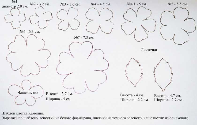 Шаблоны можно распечатывать из интернета, переносить на материал и вырезать из него детали будущего цветка.