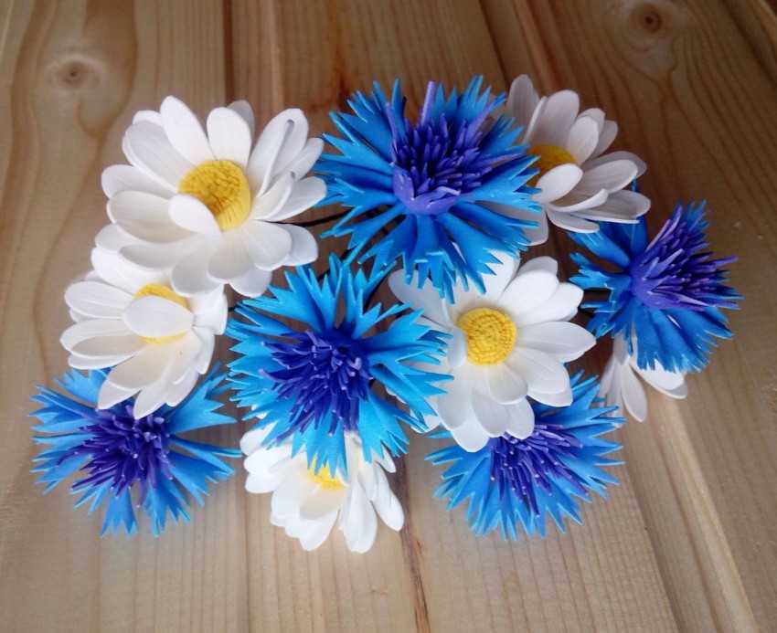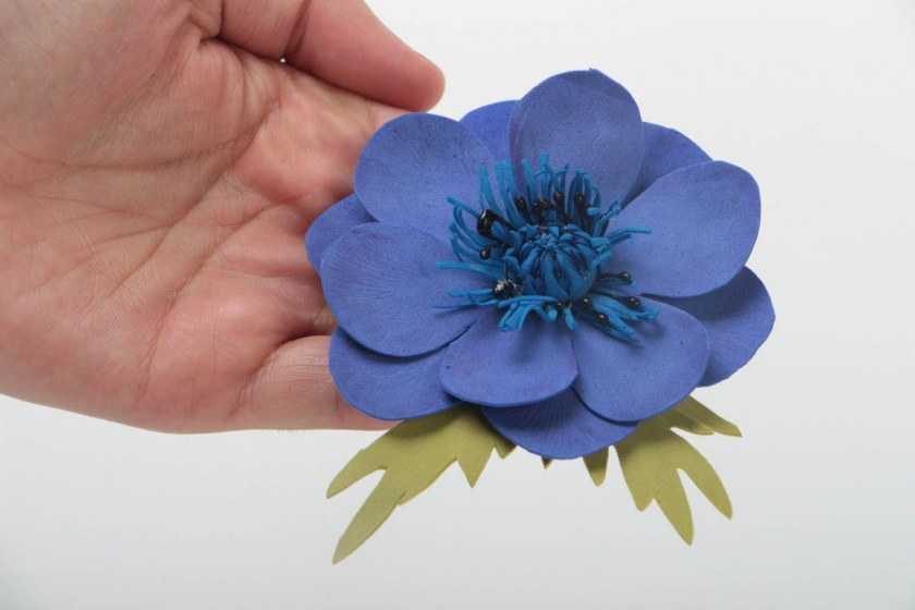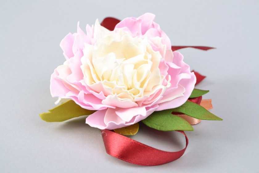 - Основой служит вспененная резина. Она пластична, хорошо режется ножницами и может менять форму при воздействии высокой температуры. Чаще всего используют фен или утюг, чтобы придать лепесткам естественный вид.