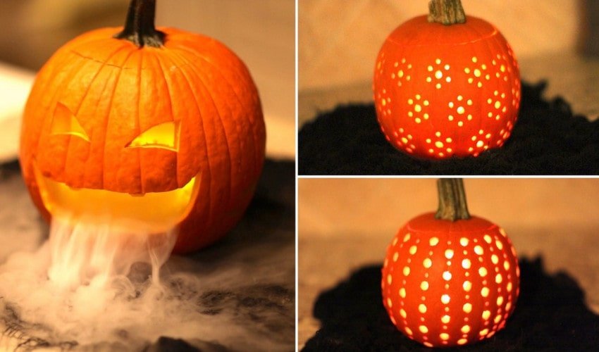 Вот так несложно можно сделать украшение на Хэллоуин из тыквы, не испортив при этом спелые овощи.