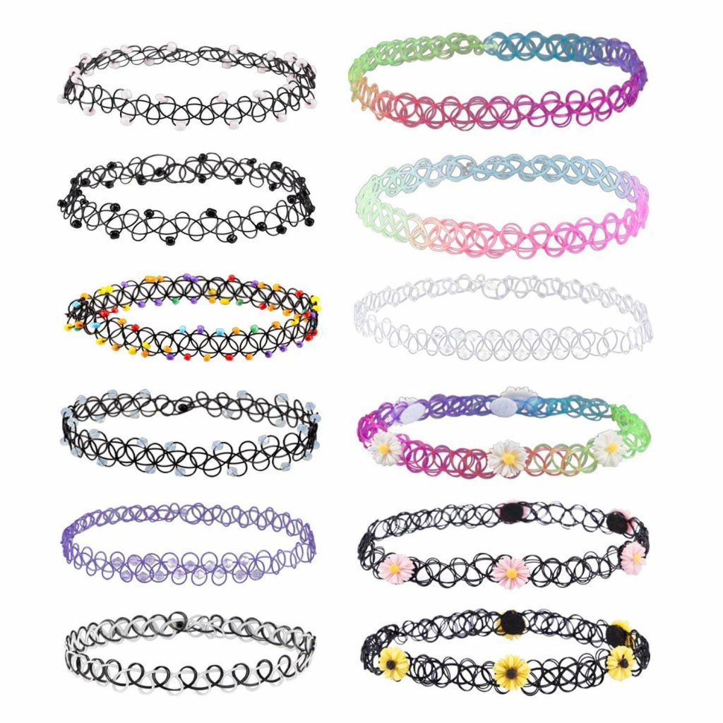 - плетеные из проволоки украшения: в отличие от тату-чокеров, изготавливаются более объемными, имеют большее количество украшений (бусин, бисера, камней, цепочек или страз);