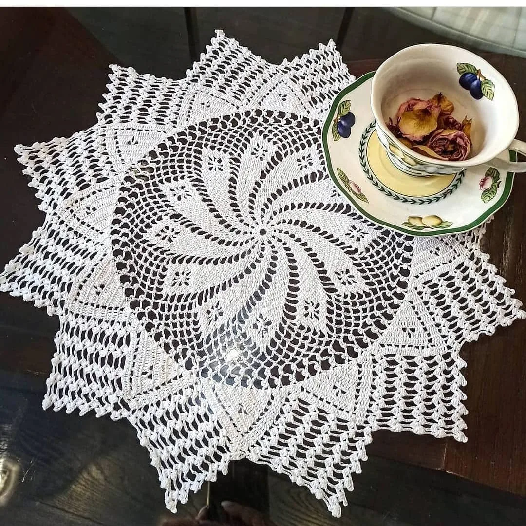 Если научились мастерить салфетки, то можно переходить к более объемным изделиям. Свяжите скатерть, которая поможет украсить интерьер любой комнаты.