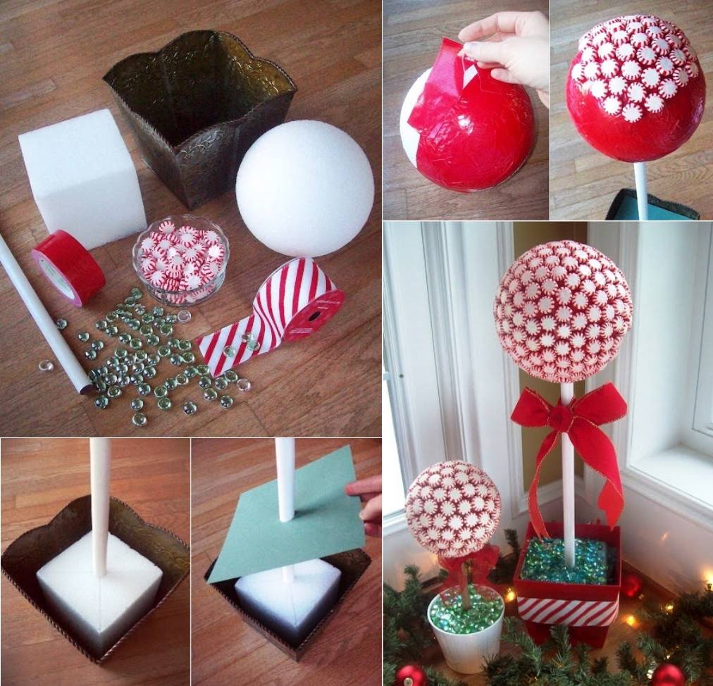 Детям очень понравится новогодний топиарий из конфет и сладостей