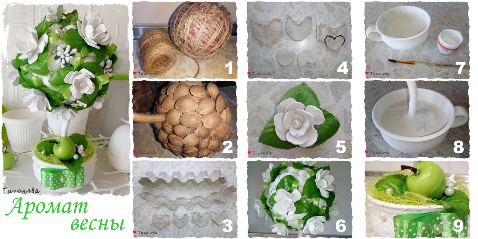 Подробный мастер-класс — цветочное дерево «Пробуждение весны» с пошаговыми фото и видео: https://topiarii-mk.ru/tcvetochnoe-derevo-vesna/.