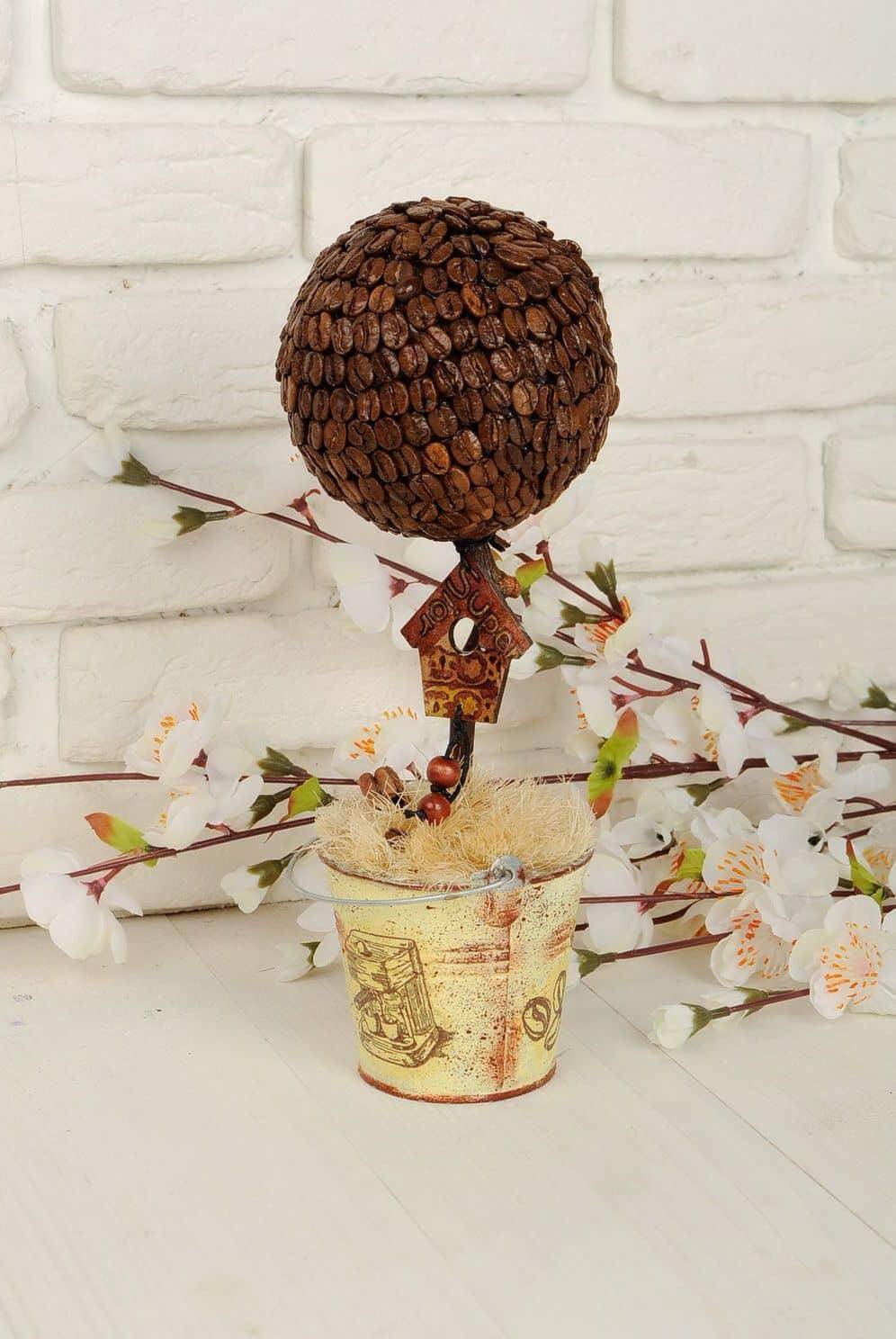 Топиарий из кофейных зерен можно поставить на кухне и наслаждаться кофейным ароматом не только по утрам