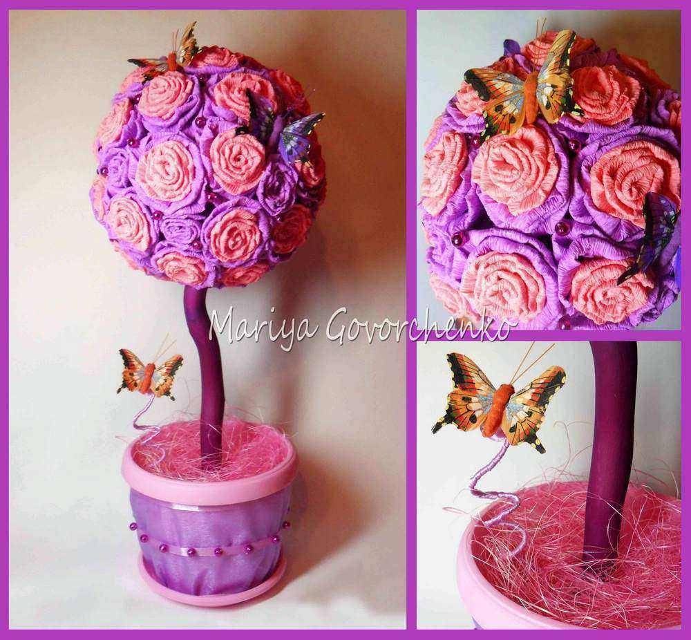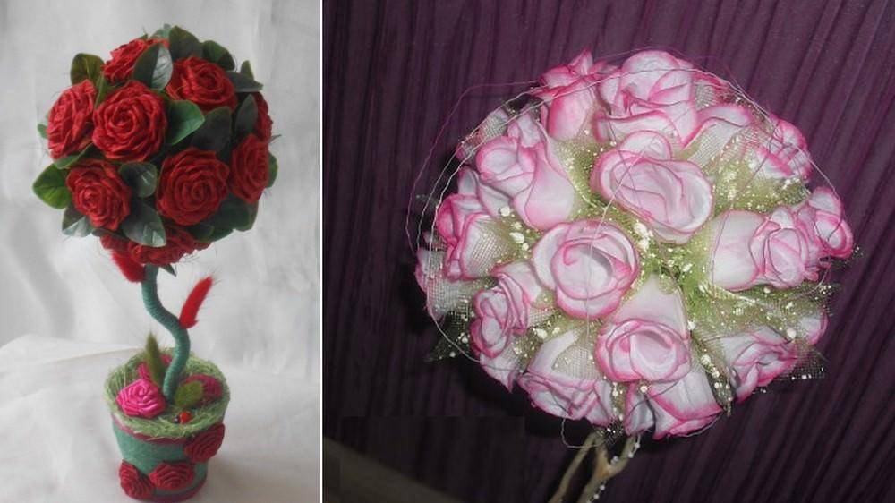 Топиарий из салфеток «розы»: пошаговая инструкция