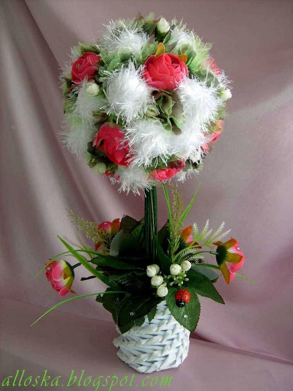 Пошаговый мастер-класс с фото — топиарий с розами и сизалем