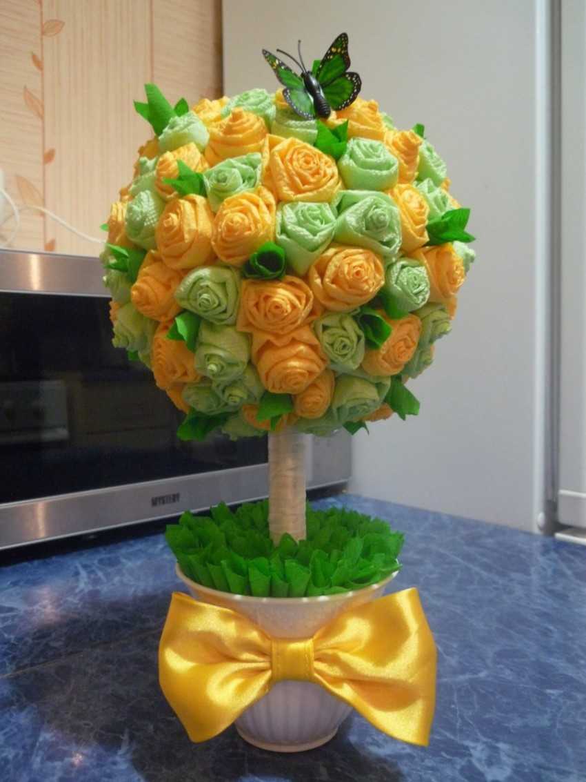 Как сделать топиарий своими руками: из кофе, салфеток, атласных лент и гофрированной бумаги