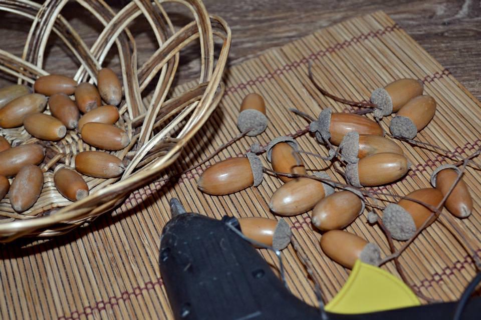 - Ушки имитируют желудями, которые надежно приклеивают.