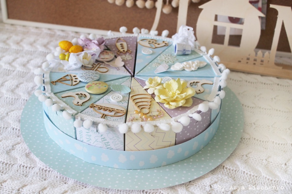 Дальше все зависит от вашей фантазии. Бумажный торт -это приятный и милый сюрприз:)