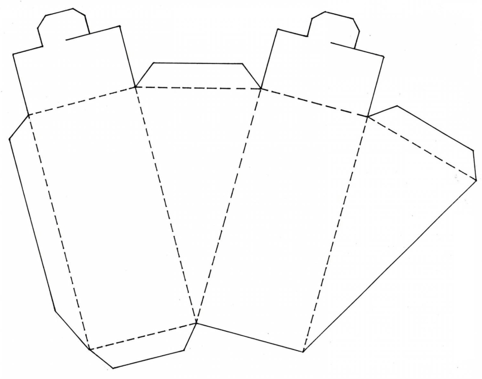 вот шаблон для кусочка торта. Его можно распечатать с помощью принтера на плотной цветной бумаге. Или просто перерисовать. Вырежьте его. С помощью тупой стороны ножниц проведите по всем сгибам и согните их.