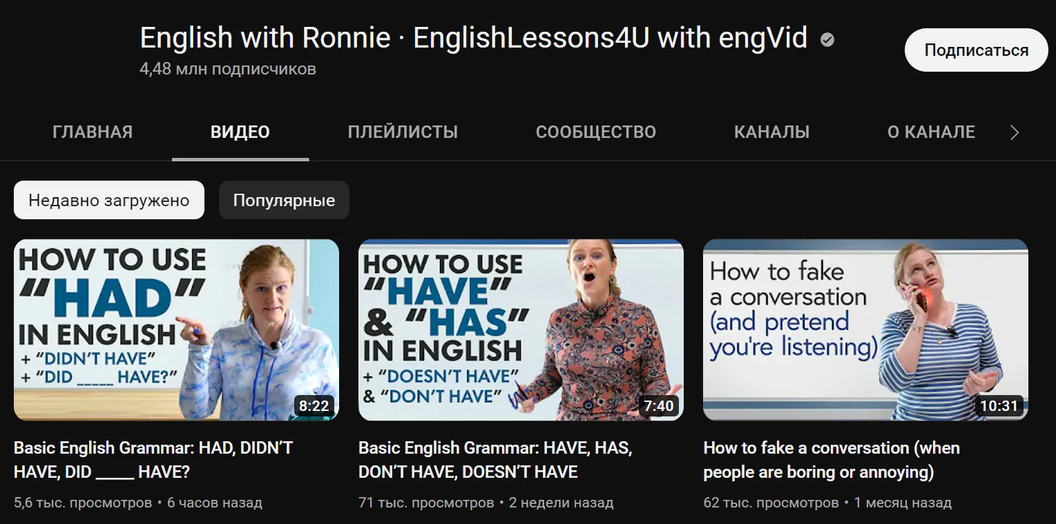 Если вы всё-таки переживаете что не сможете изучать английский на английском, мы подобрали несколько отличных русскоязычных видеоуроков: