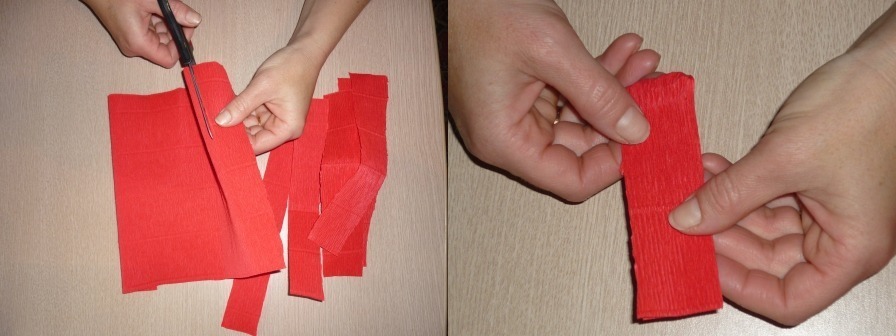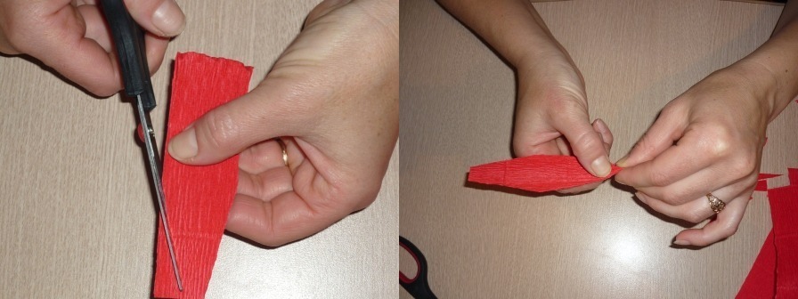 Этап 1. Делаем лепестки тюльпанов из гофрированной бумаги