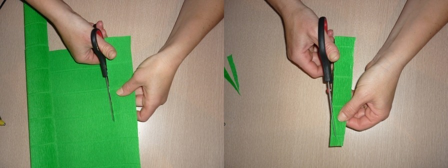 - Вырезать небольшую полоску зеленой бумаги шириной в сантиметр и немного растянуть.