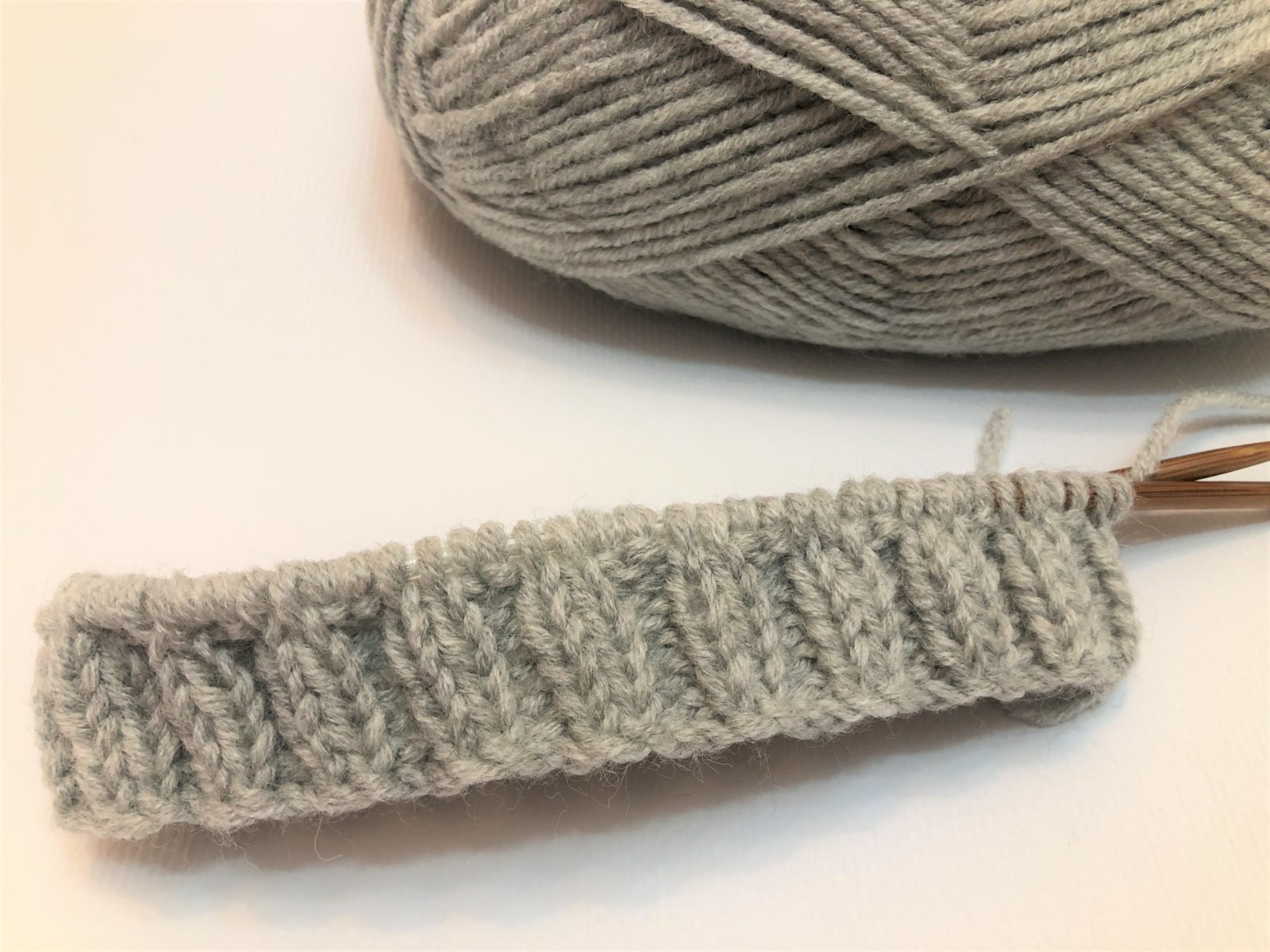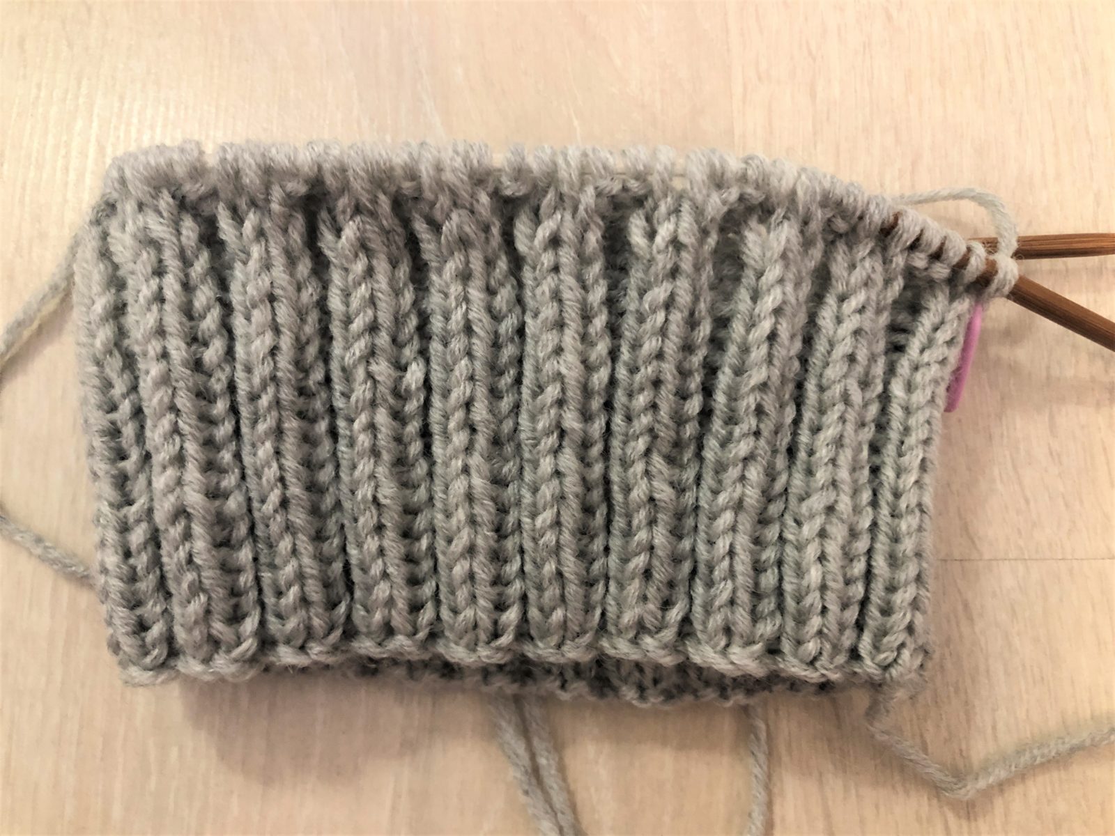 - Провязываем изделие нужной высоты. Английская резинка, связанная данным способом, выглядит так.
