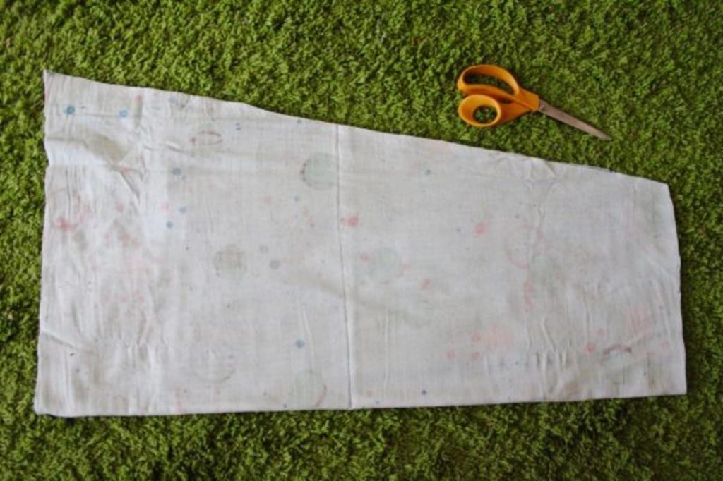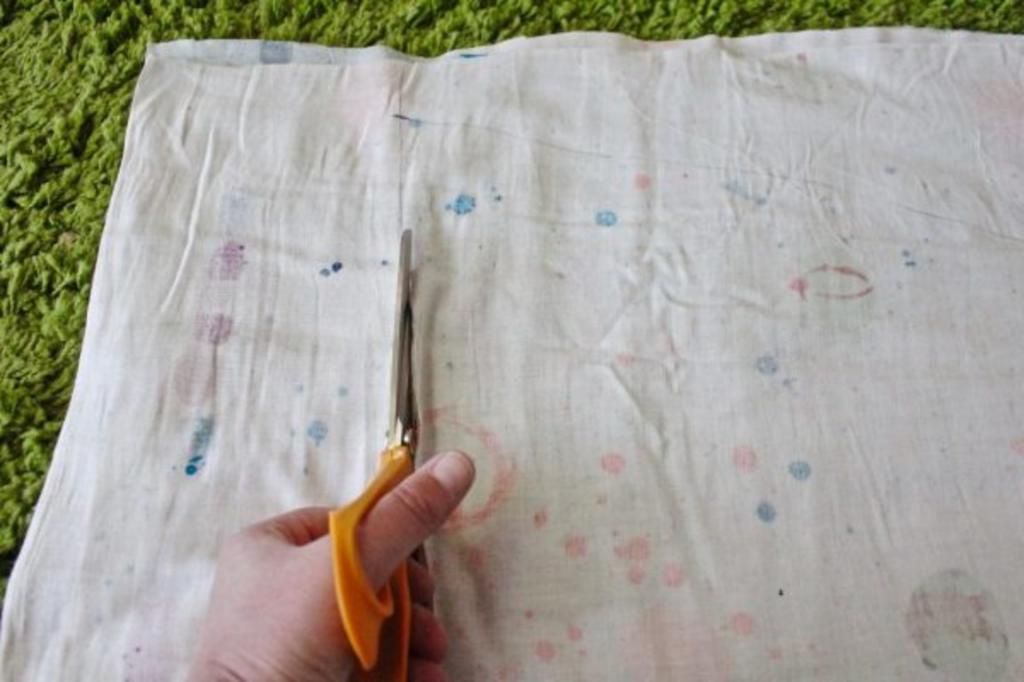 - Складываем ткань фатин в 10-15 слоев и режем на 60-70 полосок, размером 20см на 50 см.