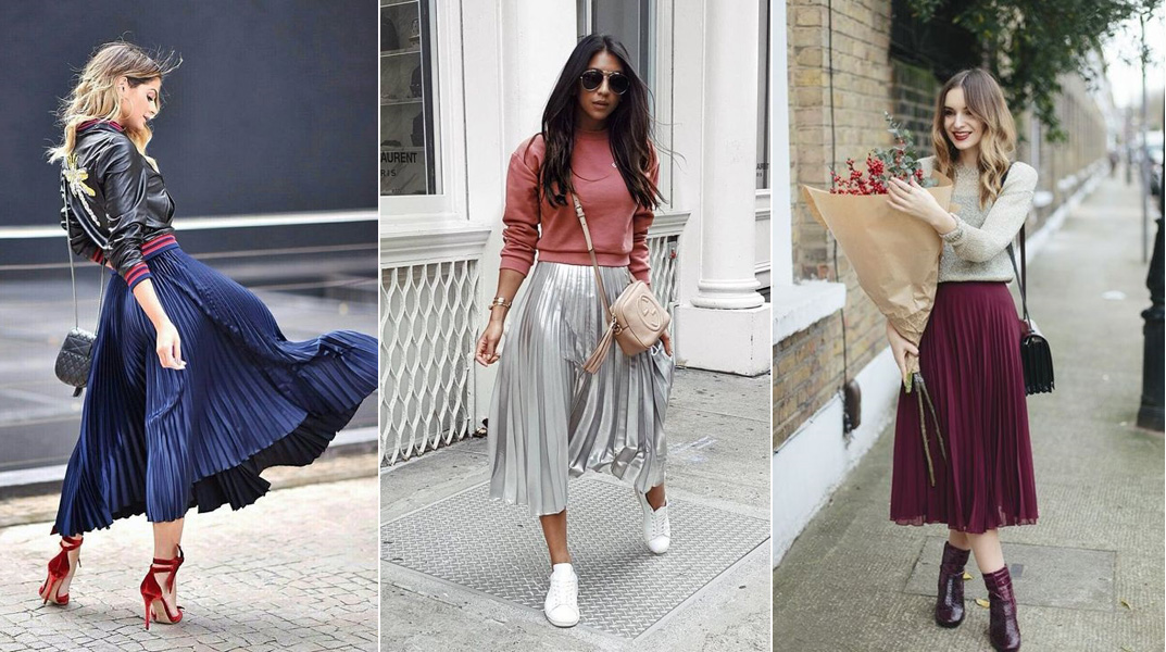 Современная плиссированная юбка-миди легко сочетается с любой обувью: