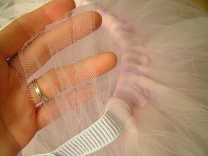 Оптимальный вариант — четыре слоя фатина средней жесткости и один — мягкого (для верхней юбки).
