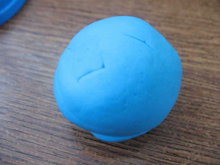 2. Берём кусочек глины бирюзового цвета и катаем шарик