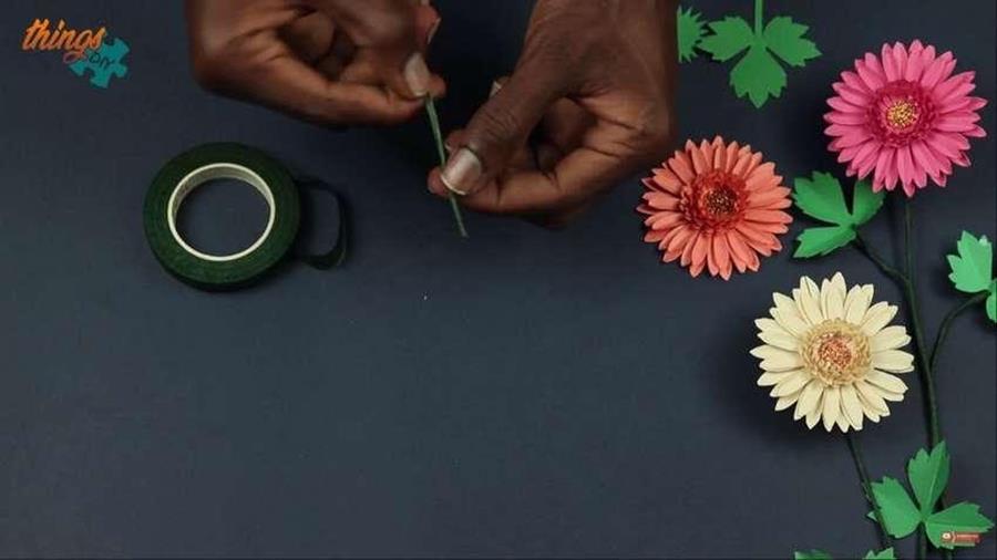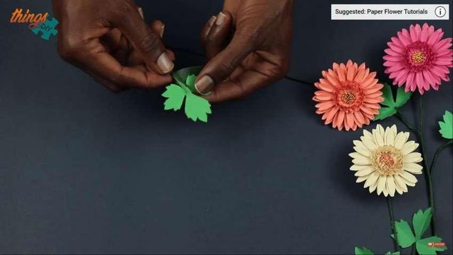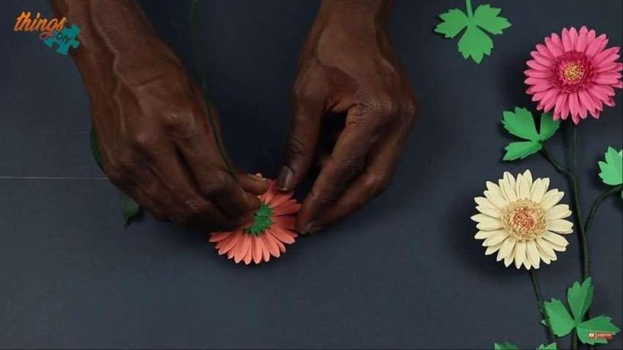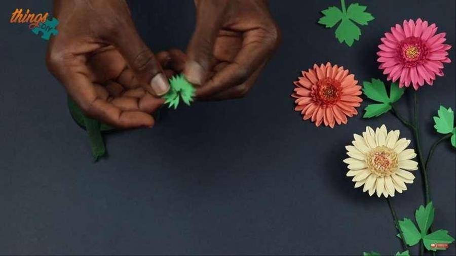 Вставляем стебель в отверстие и приклеиваем листочки.