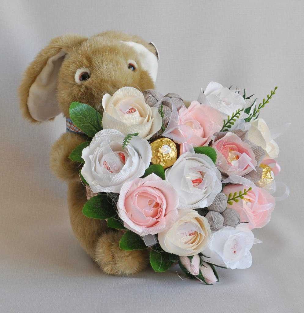 Или же взять за основу другую идею из гофрированной бумаги, спрятать в бутон конфетку. Никто от такого подарка не откажется, это уж точно!