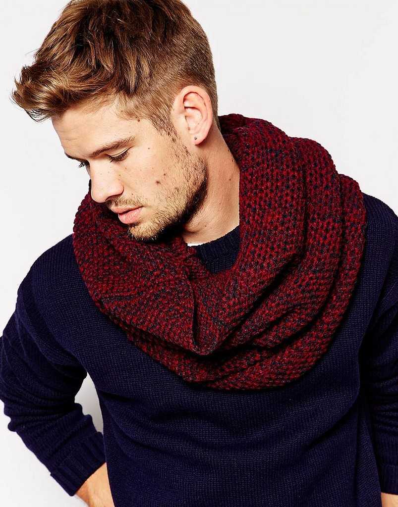 Особую популярность набирают необычные широкие полотна своими руками. Все виды мужских шарфов изготавливаются из приятных на ощупь натуральных нитей.