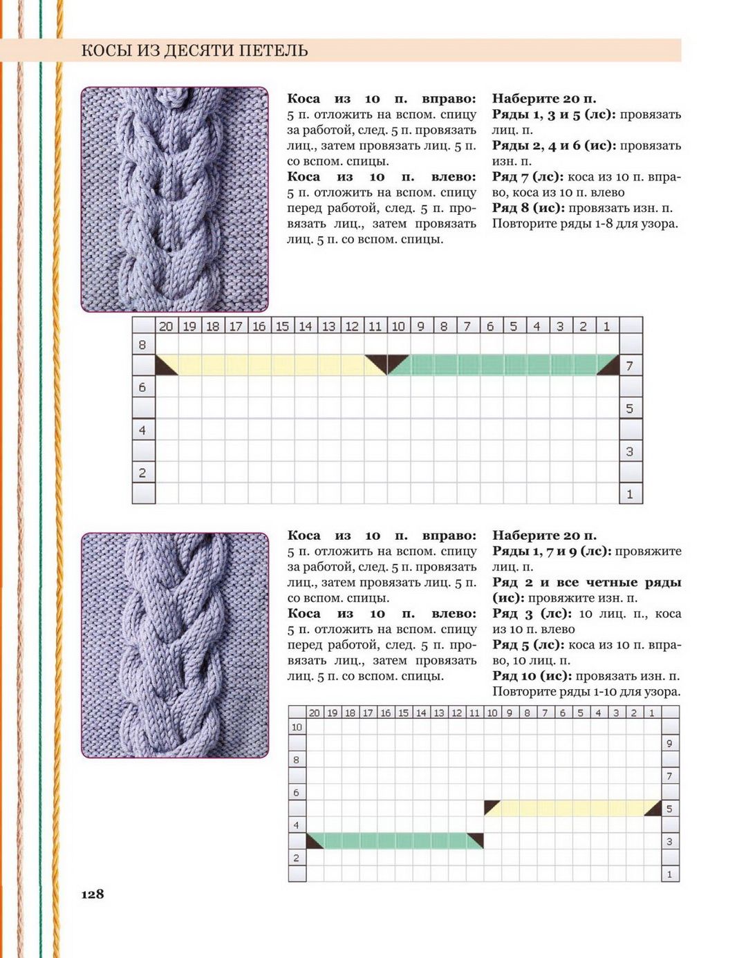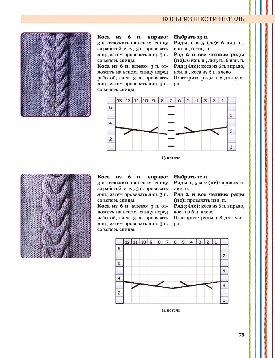 Мотив повторяется каждые 6 рядов до нужной высоты полотна, меняется только расположение его элементов. Спицами связать можно узор «Колосок» в разных вариациях по простым описаниям мастер-классов. Он выглядит эффектно как в объемном исполнении, так и в ажурном. Его схемы часто применяют для вязания свитеров, кардиганов, шапок и платьев. Эту вязку можно сочетать с другими узорами, чтобы добиться оригинальных комбинаций мотивов.