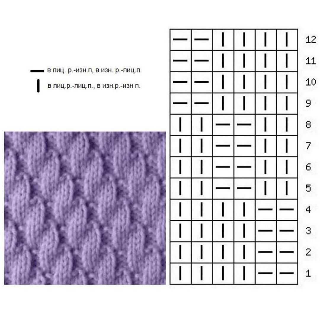 - 2 Р: вязать ряд по узору: над лицевыми – ЛП, над изнаночными петлями – ИП.