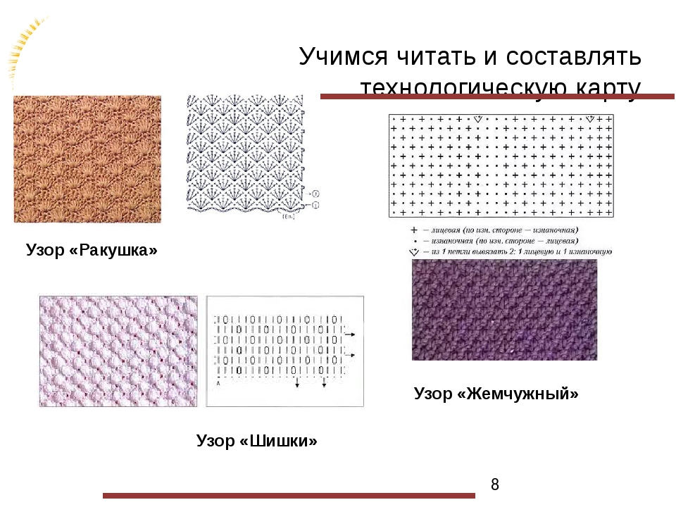 Сравните, обратите внимание на указание номера ряда:. Казалось бы, схемы одинаковые: разница только в том, что в схеме жемчужного узора указаны как лицевые, так и изнаночные ряды, а для рисового узора – только лицевые