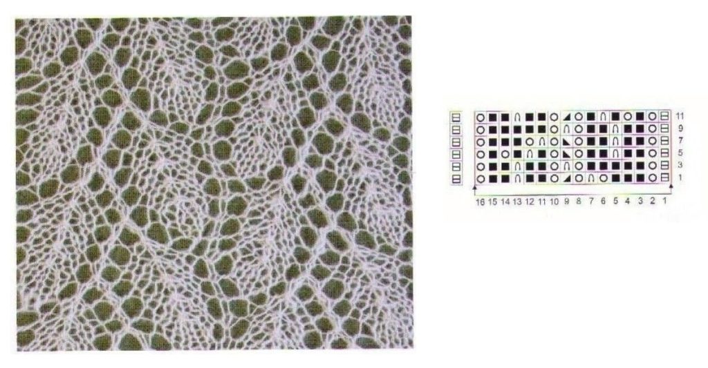 сложный узор спицами и схема к нему