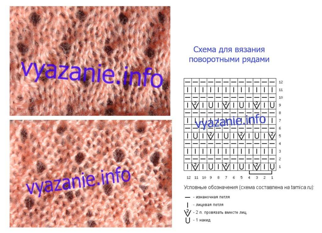 Схема для поворотных рядов. Дорожка из 3 петель изнаночной гладью и ажурная дорожка из 5 петель.