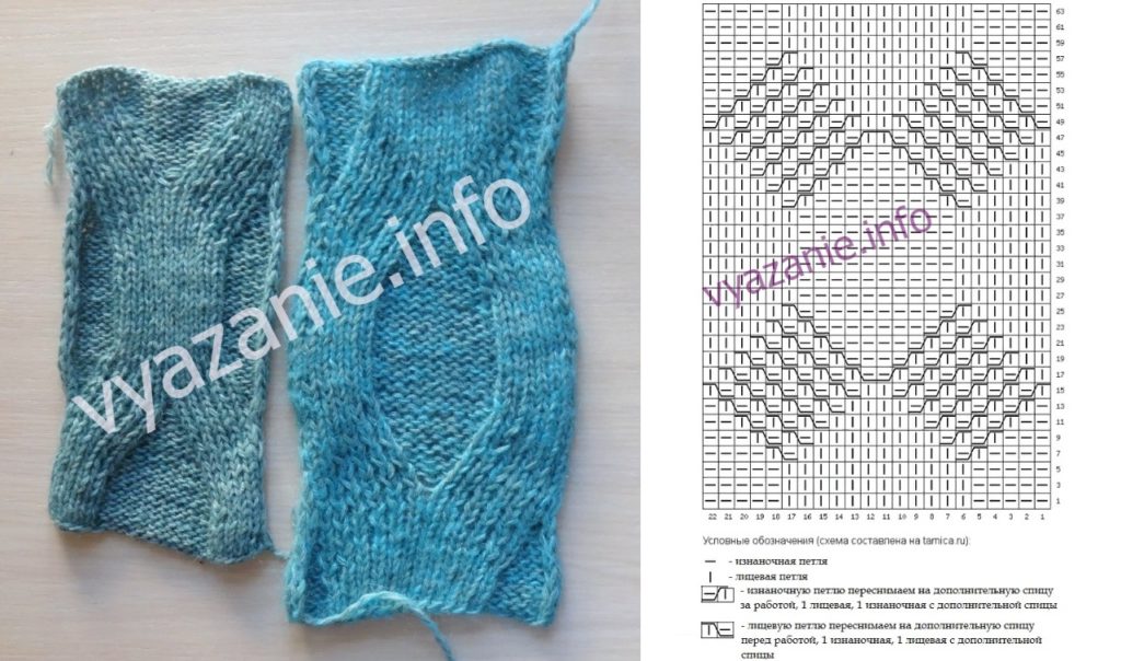 сложный узор спицами и схема к нему