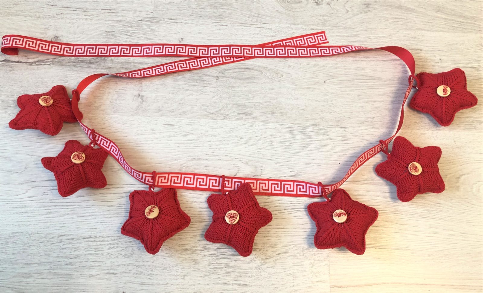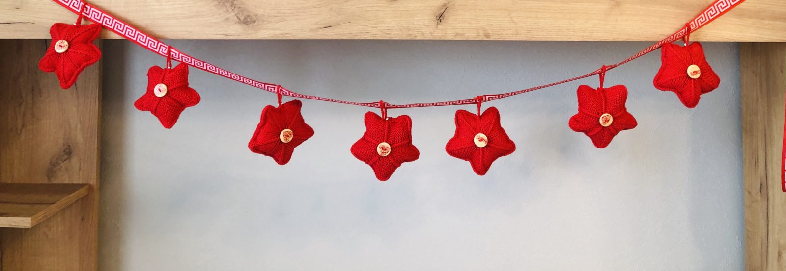 Если выбрать другие цвета пряжи для вязания звезды и другую ленту, то гирлянда станет просто праздничной. Например, для дня Рождения ребенка, на Пасху или 9 мая.
