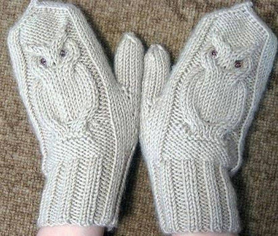 Детские варежки спицами с узором Сова, мастер – класс!