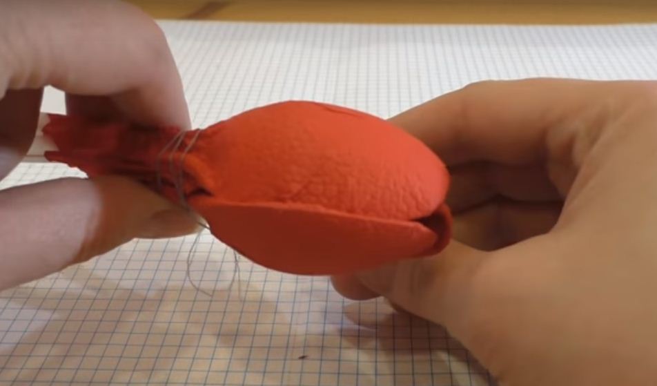 В полученные надрезы вставляем красный цветок. Если немного пофантазировать, можно получить вот такие интересные варианты этой поделки.