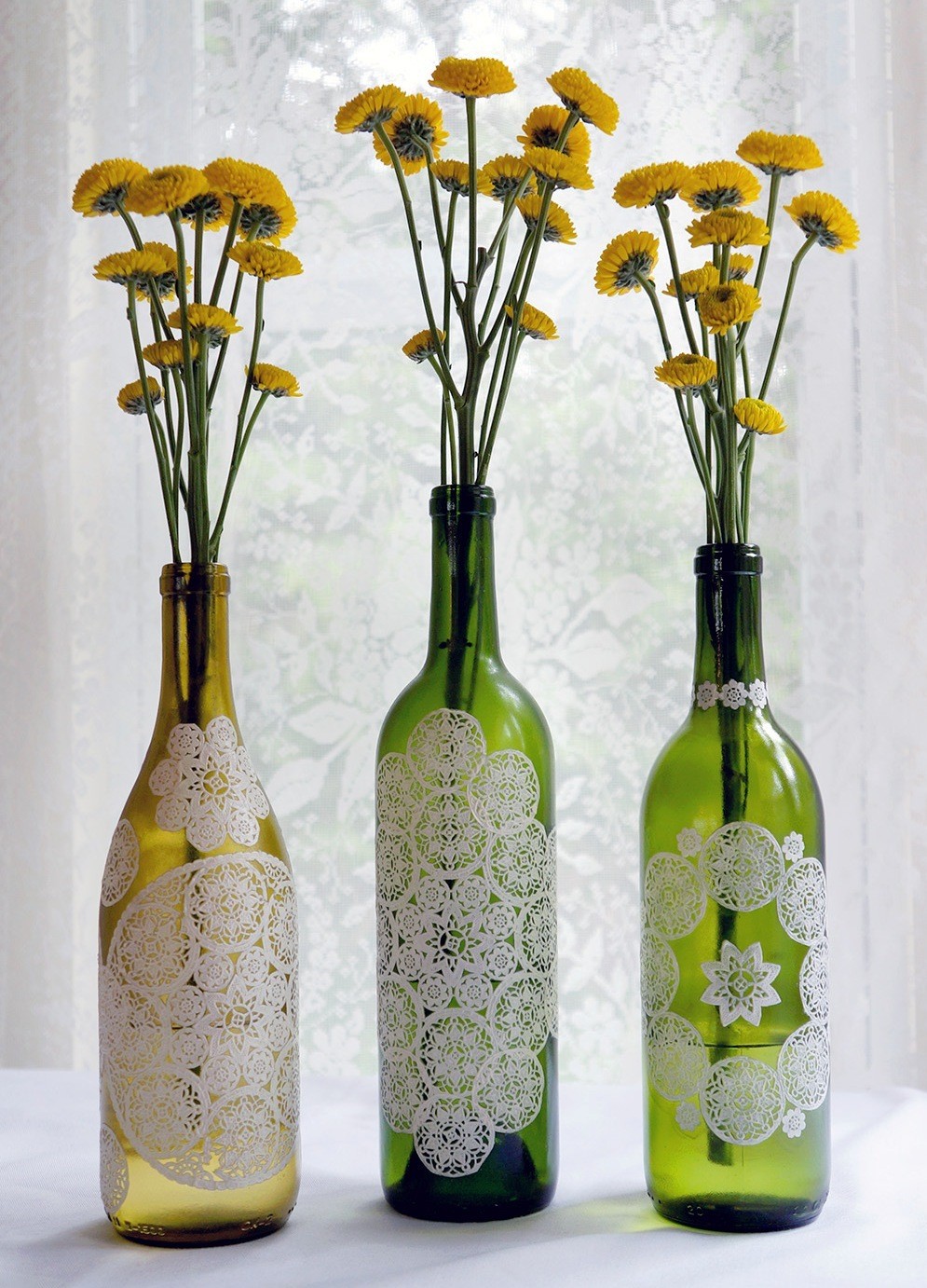 Как сделать вазу из стеклянной бутылки или баночки? Для этого выбранную емкость тщательно очищают мягкими моющими средствами, содержащими спирт, чтобы не осталось следов жира или грязи.