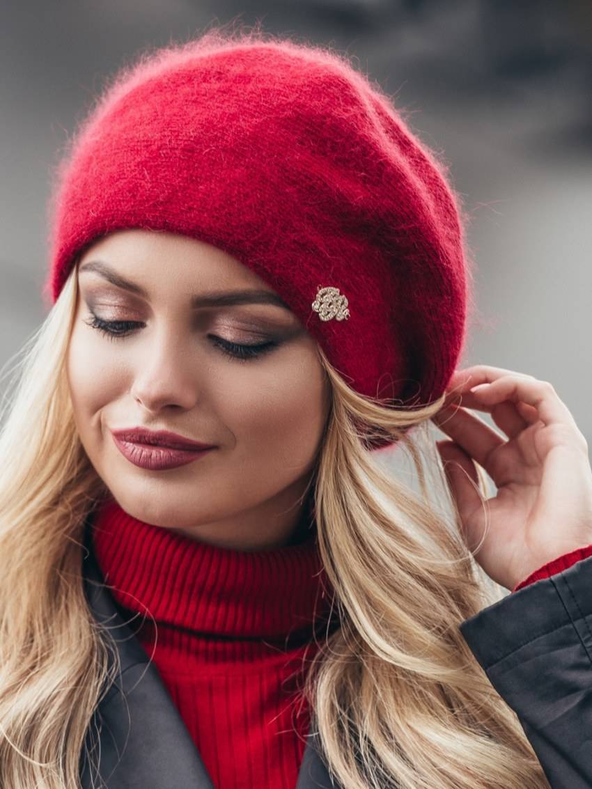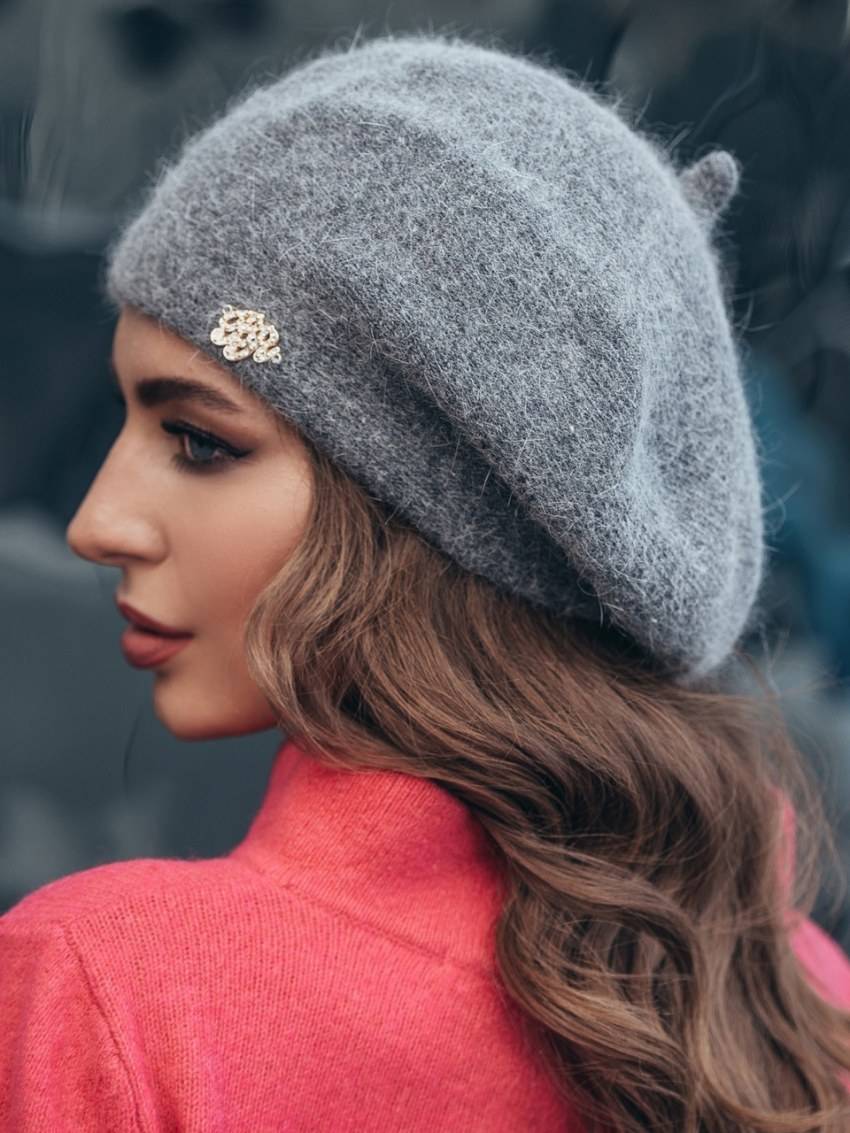 Эффектно смотрятся вязаные береты для женщин из мохера на основе искусственного волокна. Подобная пряжа очень нежная. Однако стоимость её на порядок выше.