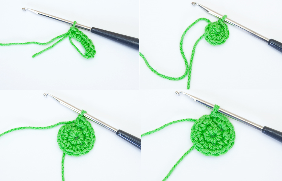 Справедливости ради надо отметить, что существует еще один способ сделать первую петлю. Он отличается от уже описанных первых двух, так как имеет собственное предназначение. Первые два способа используются, когда вы вяжете полотно. А вот при вязании круга, чтобы не было большой дырки в середине, применяют так называемую технику вязания кольца амигуруми. Кольцо амигуруми можно также использовать в начале вязания салфетки, шапки или варежек.