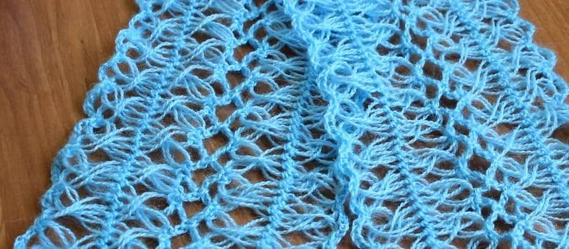 6. Провязываем дорожку до той длины, которая будет на изделии, будь то шарф, накидка, палантин или даже кардиган. После этого пересчитываем витки с обеих сторон. Оно должно быть одинаковым. Если где-то меньшее количество, довязываем по необходимости, описанным выше способом.