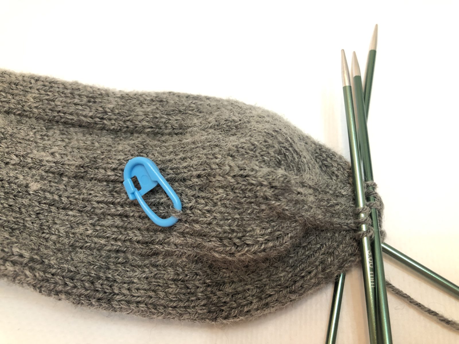 Разбор пробной петли. После оценки пробной петли ее необходимо разобрать, чтобы начать вязание пяток носков