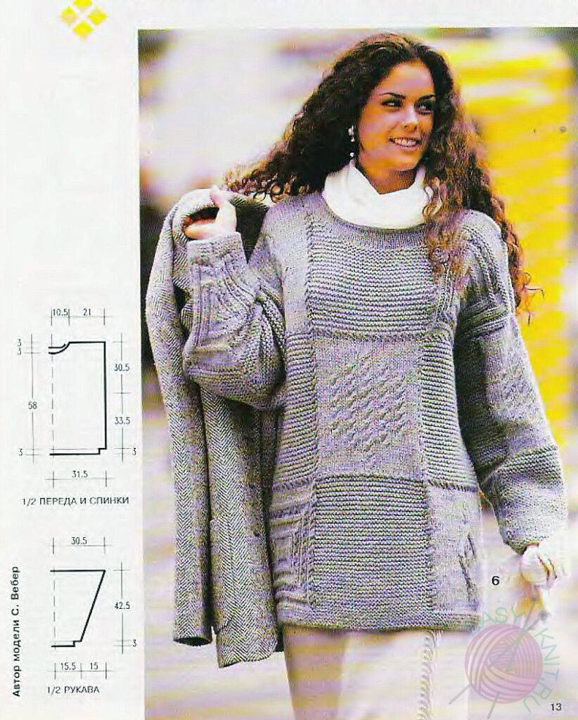 Это только несколько примеров, как можно соединить различные узоры в одном полотне. Каждая вязальщица может придумать свои варианты или, опираясь на предлагаемые описания, создать свои компоновки.