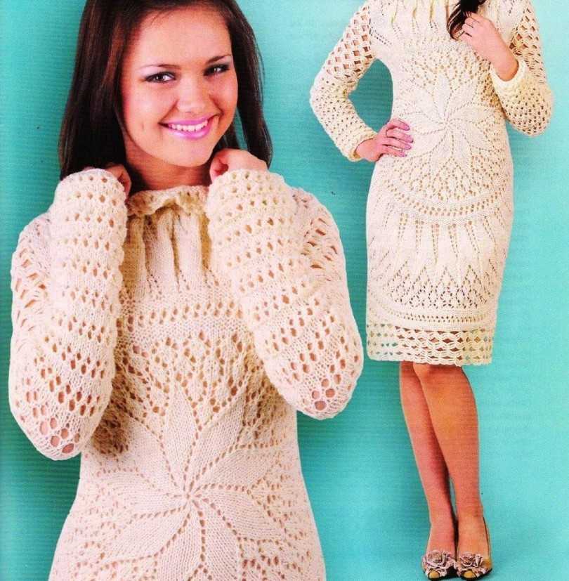 Спицы дают возможность связать теплое платье на зиму с рельефным рисунком. А крючком лучше вязать летнее платье, поскольку данный способ дает возможность выбрать ажурный рисунок и быстро вяжется.