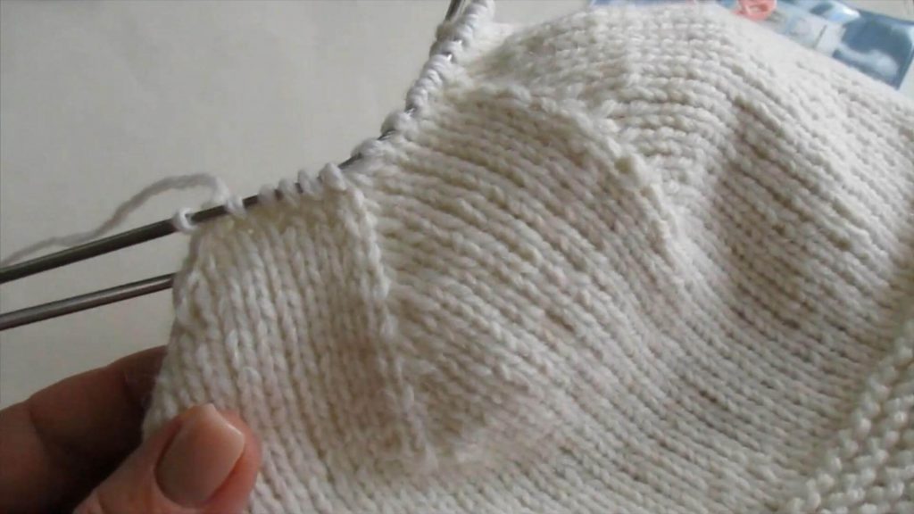 Дальше изделие вяжется либо на пяти спицах (в этом случае вам удается избежать сшивания шва), либо на обычных спицах посредством вывязывания прямых и обратных рядов.