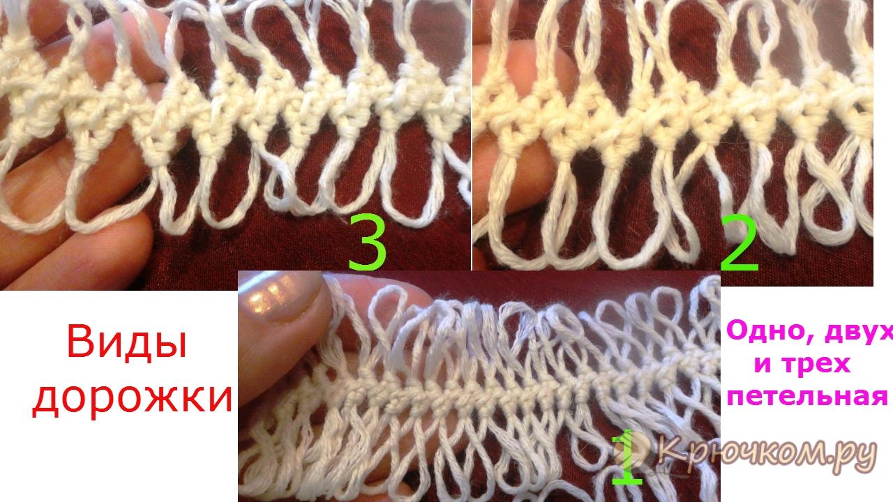 Результаты плетения с 1, 2,3 петельками по центру вилки. Эти петли ещё называют дорожкой.