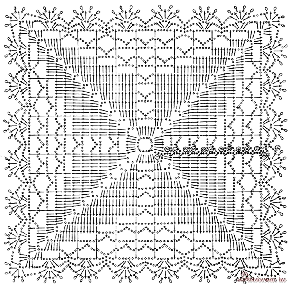 Вязание прямоугольной скатерти крючком. Схема вязания.