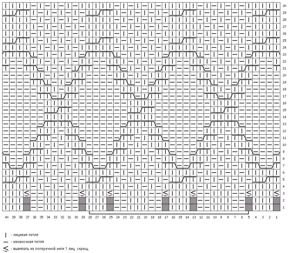 Далее с 1-го по 6-й ряды схемы повторяем раппорт узора (с 9-й по 20-ю петлю).